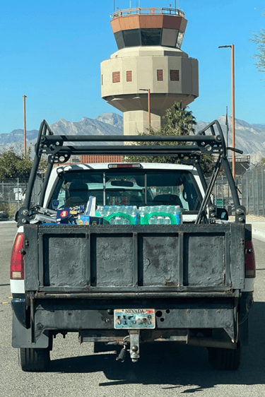 On Thursday morning, several folks from the North Las Vegas Hangar Owners Group teamed up with Clark County Department of Aviation management and staff to deliver two vehicle loads of food, water, and essential supplies, along with $50 Walmart gift cards, for the Air Traffic Controllers and assigned FAA engineering personnel and their families at our ATC Tower at the North Las Vegas Airport.